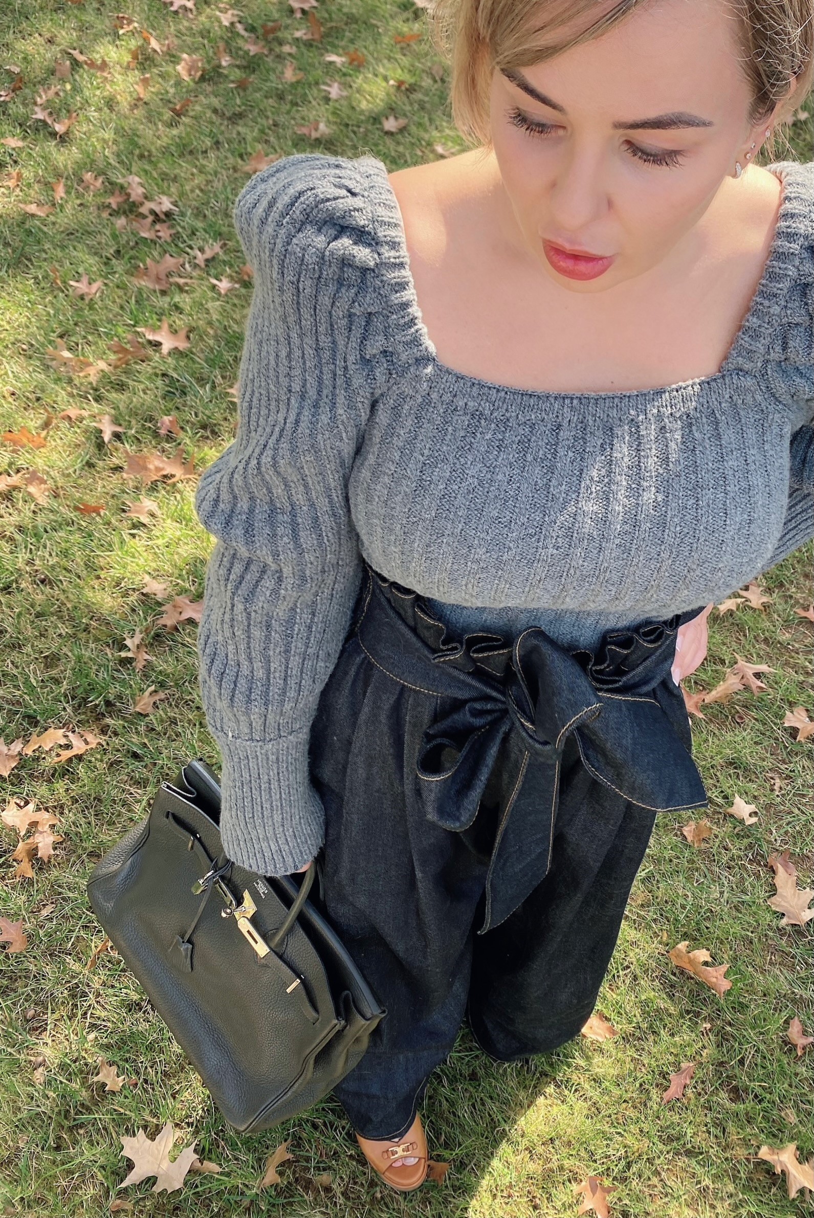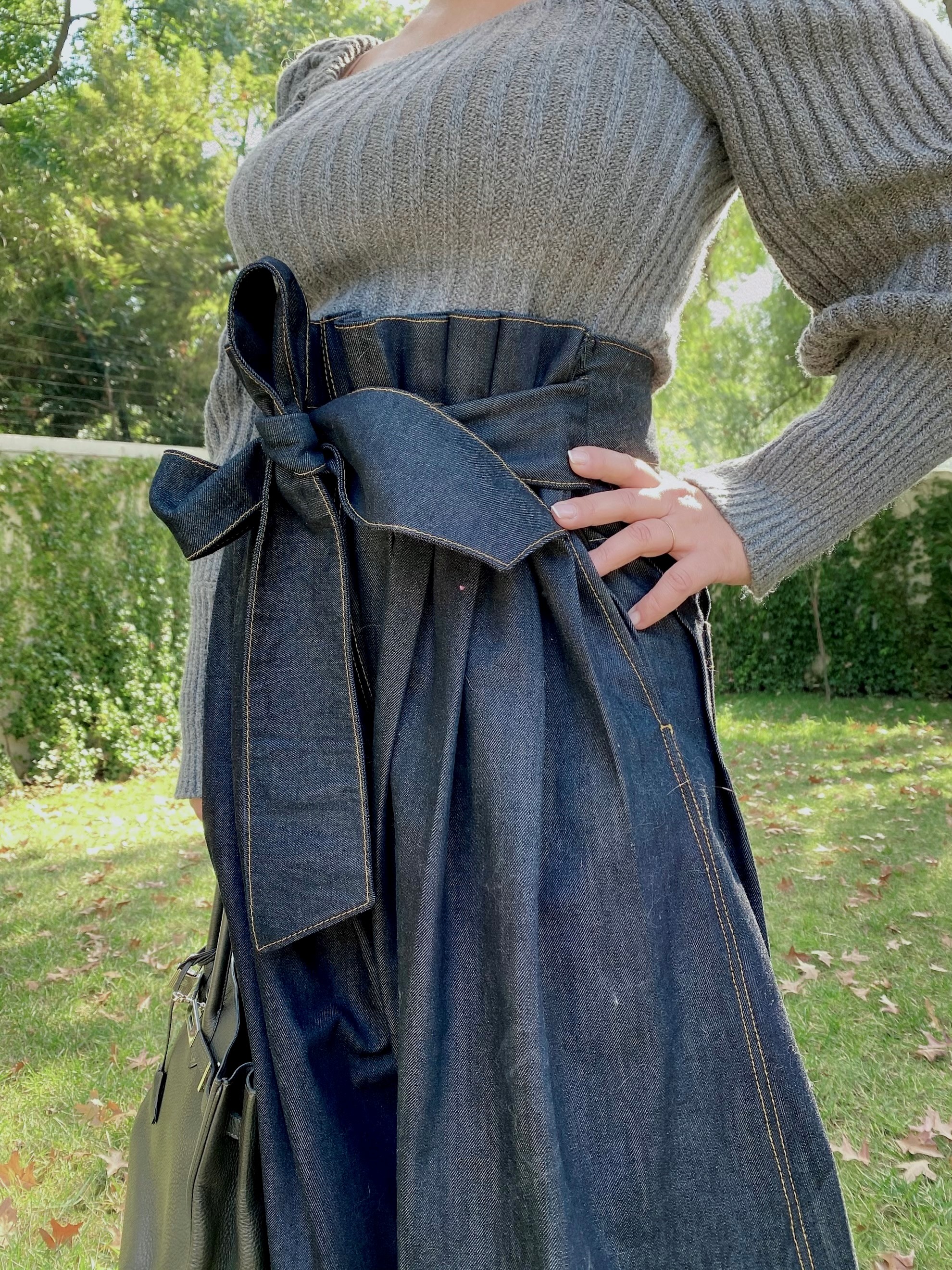 Recently I have fallen head over heels in love with Lezanne Viviers, the designer behind Viviers Studio and the most dreamy pieces of clothing, mixing impossibly couture details, impeccable tailoring and a creativity not often found away from Paris Fashion Week… I found her totally by luck by going down my Instagram feed rabbit hole, and a few months later Lezanne and her team of incredibly talented tailors have made me a few beautiful pieces, all made to measure, including this fantastic pair of paperbag trousers. I fell in love with the structured look and oversized legs, and who cares if even my highest platforms disappear underneath, I adore the look. Although they are made of denim, the look ends up being very couture and fun but grown-up, if that makes sense.
