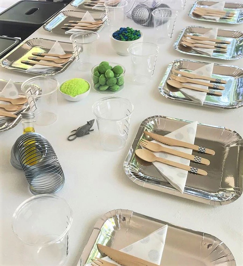 The sweets table was lovely and easy to put together, with a beautiful cake from Carmella’s On The Square, little shark jelly fish, rock candy, all colour coordinated… Always mindful of having healthy options, I added little seaweed looking strings of green grapes, small buckets of raspberries that reminded me of little sea anemonies. Carmella also made some sea-shell macaroons which were just darling. We had small balloons into mesh made to look like buoys, and a super cute seahorse guarding the sweets (he clearly wasn’t scary enough as the little ones had devoured a big chunk of the sweets before long).
