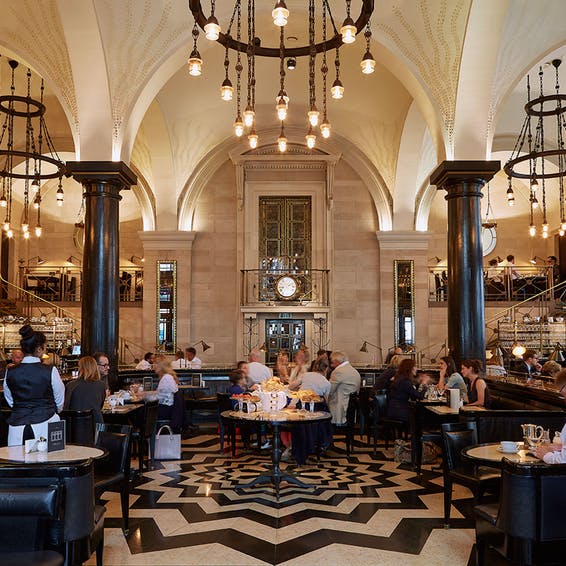 The menu is quite classic, but totally delicious, with warm scones at the top of the three-tier tray, under a little cloche, six cakes on the middle tier, made each morning by the restaurant’s pastry chefs, and five sandwiches at the base, washed down with a tea from the special Wolseley selection, as well as a glass or two of champagne. Remember, this place is super popular, so it’s key to book in advance, as the Wolseley will rarely have tables for walk-ins…